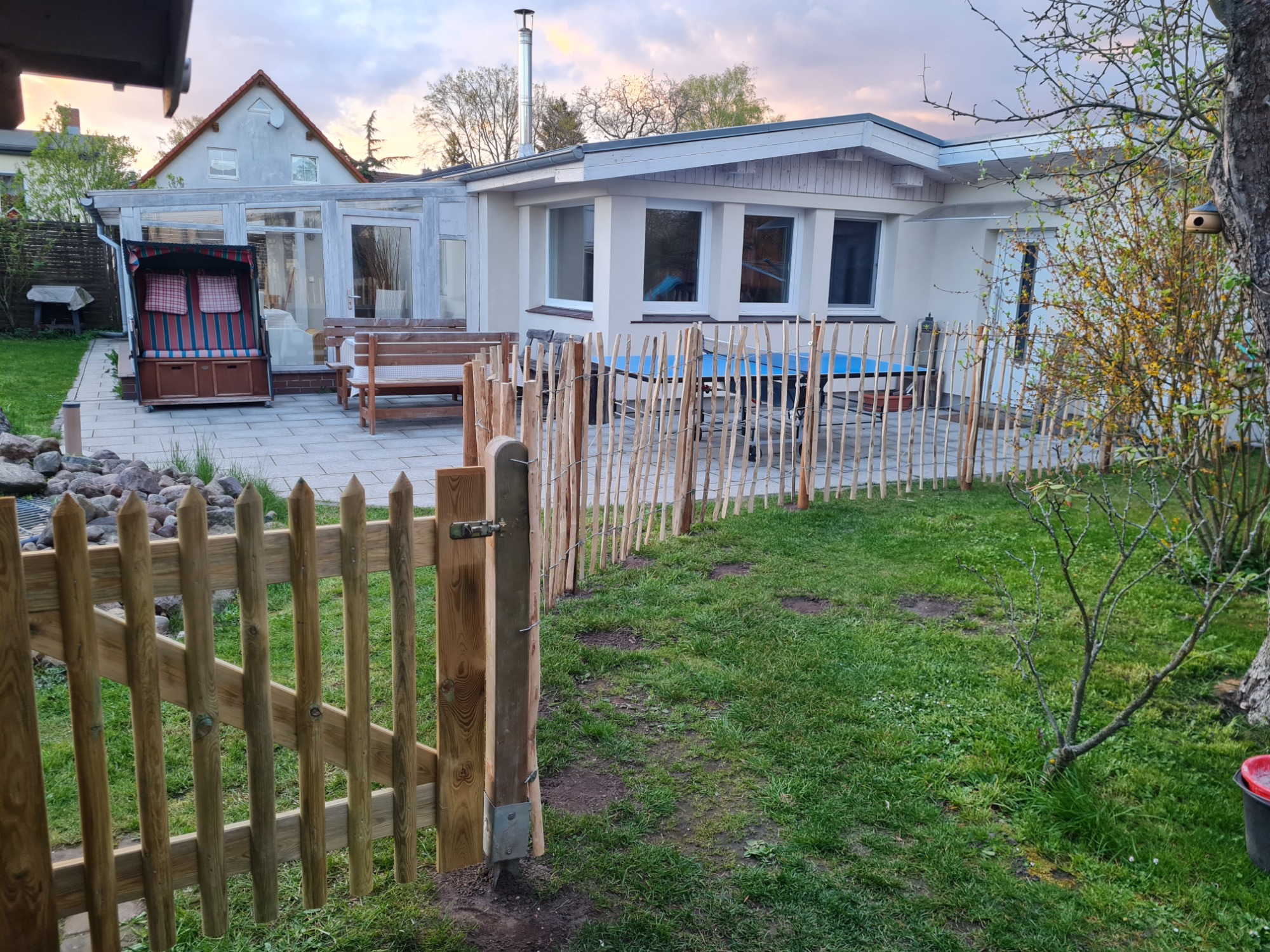 Verbringen Sie entspannte Abende auf unserer weitläufigen Terrasse oder unter dem überdachten Abschnitt der Terrasse bei einem lauen Sommerregen.